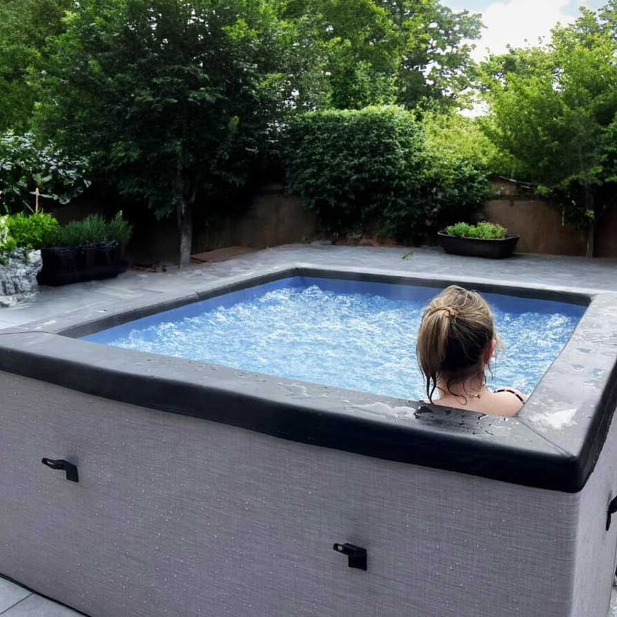 Heats to 40°C (104°F) and uses 50% less energy than inflatable spas