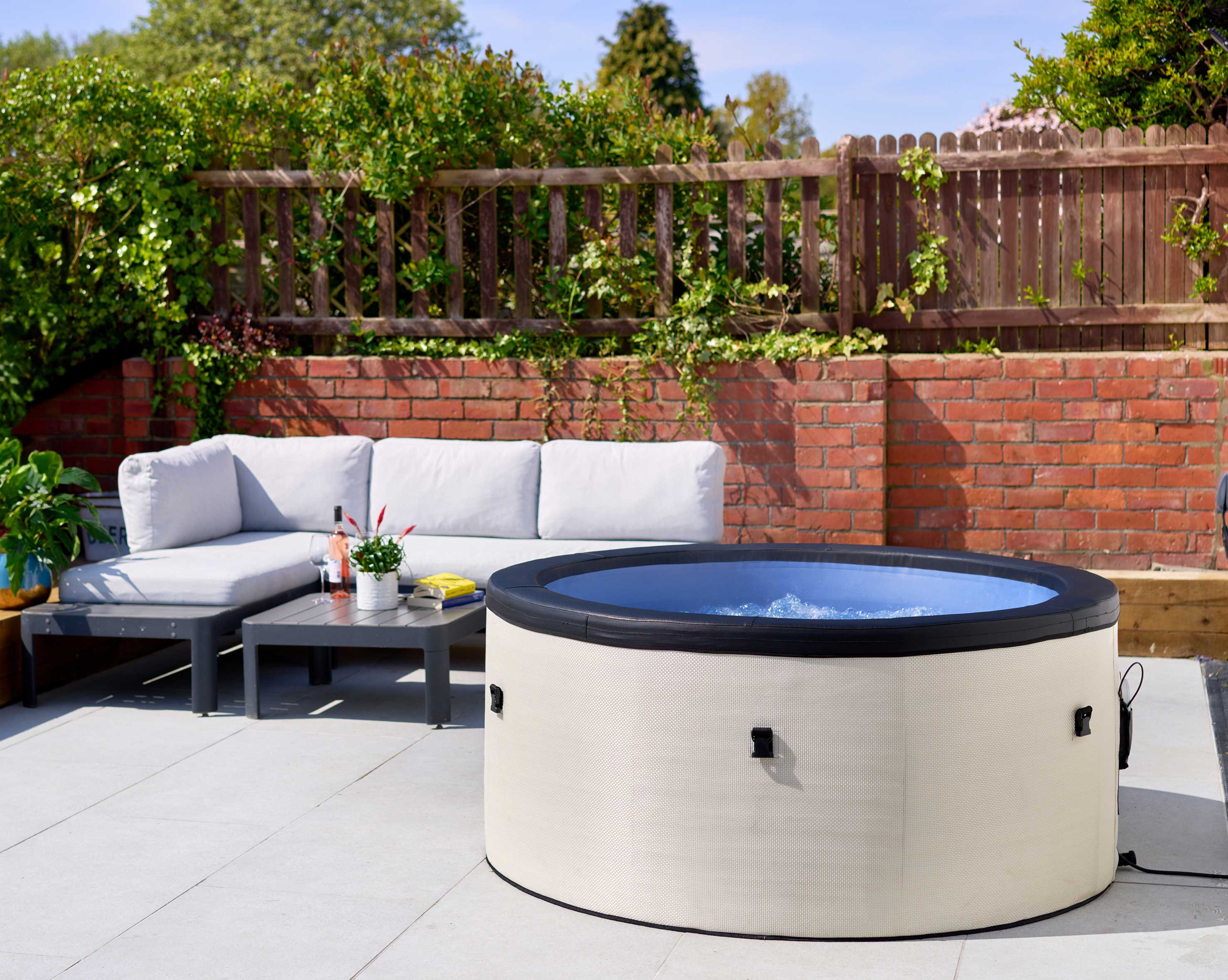 Heats to 40°C (104°F) and uses 50% less energy than inflatable spas
